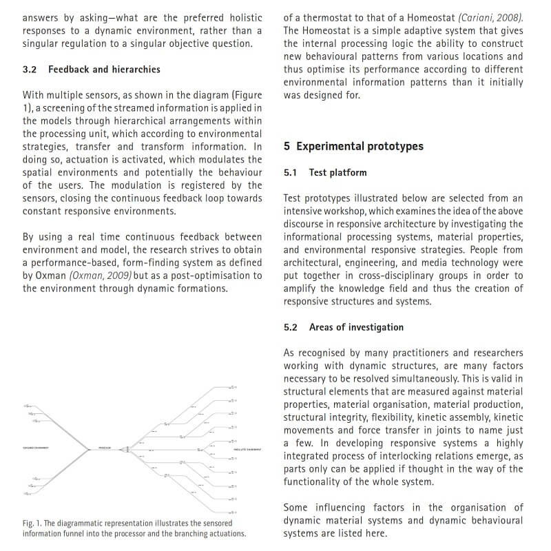 This paper by Isak Worre Foged and Esben Skouboe Poulsen, illustrates responsive systems, which focus on the implementation of multi-objective adaptive design prototypes from sensored environments.