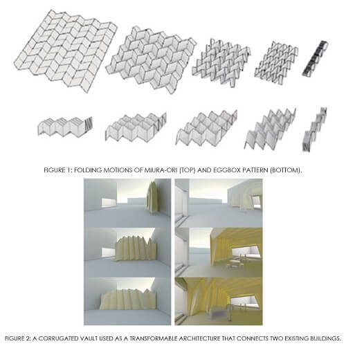As the first step to achieve this goal, the author proposed a freeform design method of kinetic structures based on origami (developable surface) to provide design variations of Miura-ori through an interactive design system in which a user can deform the surface freely while sustaining the rigid-foldability of the surface ([Tachi 2009a]).