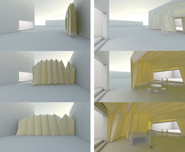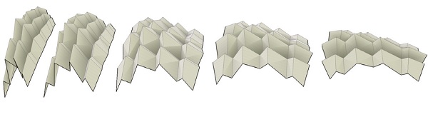 As the first step to achieve this goal, the author proposed a freeform design method of kinetic structures based on origami (developable surface) to provide design variations of Miura-ori through an interactive design system in which a user can deform the surface freely while sustaining the rigid-foldability of the surface ([Tachi 2009a]).