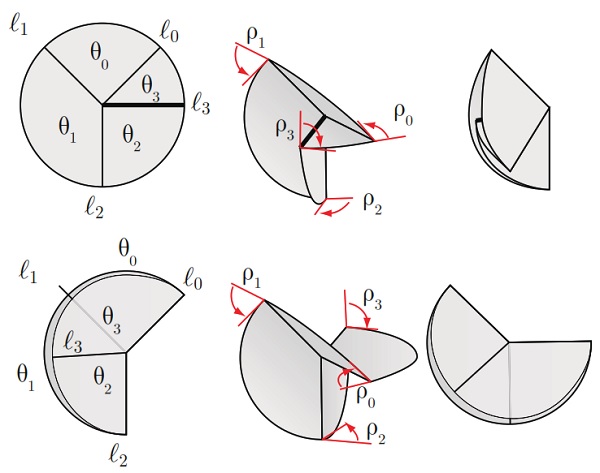 However, since the rigid-foldability of known surfaces strongly relies on the symmetry of the pattern, designing such structures could not be done in an ad-hoc approach; the geometric constraints must be generally investigated to solve an inverse problem of obtaining a pattern from the resulting form and behavior.