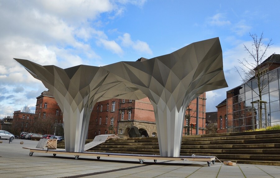 Fold finding – a novel approach to folded structures – This project, created by Architect Tal Friedman, describes the design and fabrication process of the first self supported folded cantilever made entirely by folding sheets into their final position.