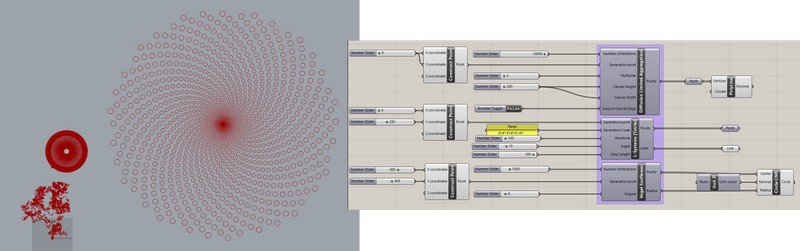Fractals is a plugin for Grasshopper that allows users to create 3 different types of mathematically generated fractals. These fractals are derived from the following mathematically generated patterns: Fermat Spiral (Vogels Sunflower) and Diffusion Limited Aggregation (Drunken Man Algorithm). Also a component for Boids has also been added.