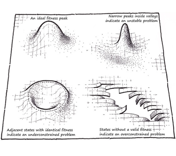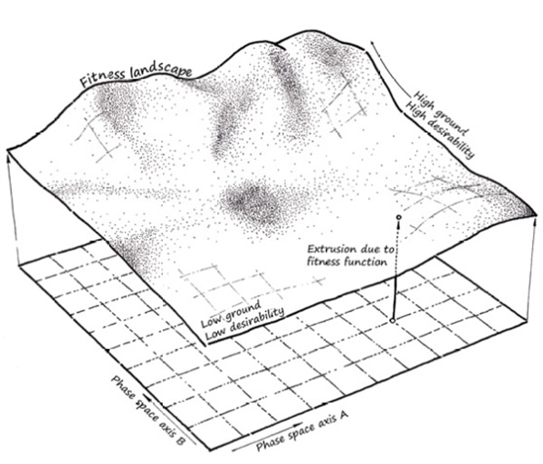 Although these categories are of interest to complexity theorists, they are well beyond what the average person can make use of. Here, I will use the metaphor of landscape to explain the search for possible solutions. We are all familiar with the basic geometry of landscapes, which thus provides a good locus for a shared narrative.