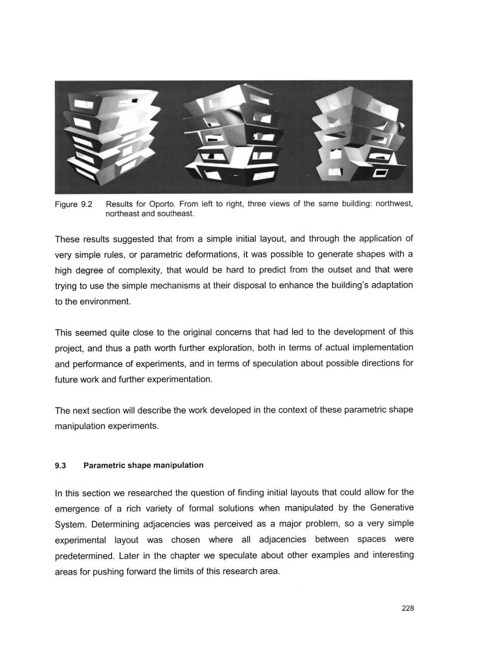 Results are very satisfactory and provide confidence to extend the GS to complex building layouts. Comparative studies using other heuristic search procedures like Simulated Annealing are also performed. The GS is then applied to an existing building by Alvaro Siza, to study the system’s behavior in a complex architectural domain, and to assess its capability for encoding language constraints, so that solutions generated may be within certain design intentions. An extension to multicriteria problems is presented, using a Pareto-based method.
