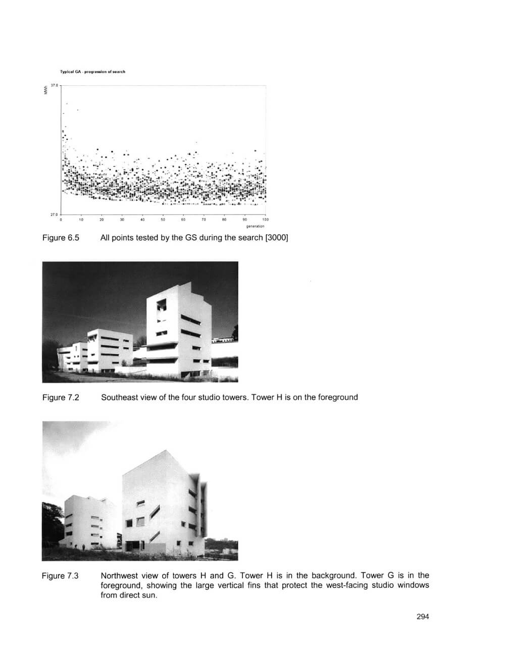 The initial aim of the project focused on helping architects improving the environmental performance of buildings, but the final conclusions of the thesis transcend this realm to question the process of incorporating computational generative systems in the broader context of architectural design. The Generative System [GS] uses a Genetic Algorithm as the search and optimization engine. The evaluation of solutions in terms of environmental performance is done using DOE2.1E. The GS is first tested within a restricted domain, where the optimal solution is previously known, to allow for the evaluation of the system’s performance in locating high quality solutions.