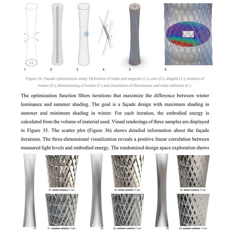 Author investigated workflows driven by artificial intelligence (AI) to open new ways for design space exploration and generation that map geometric data to light behavior. Furthermore, He saw how building scale illuminance and structural performance can be combined to unlock design potential and create a new architectural vocabulary.