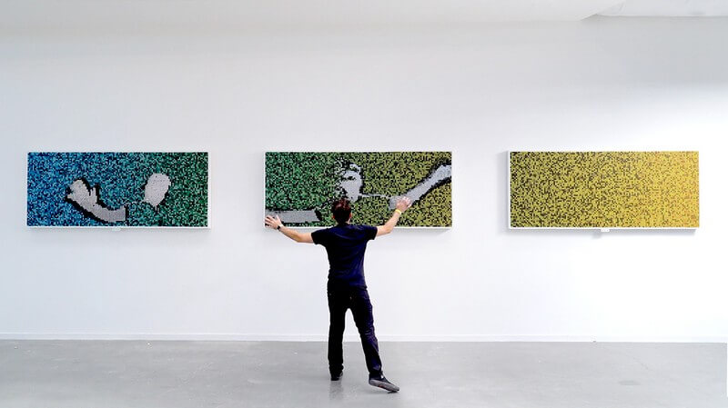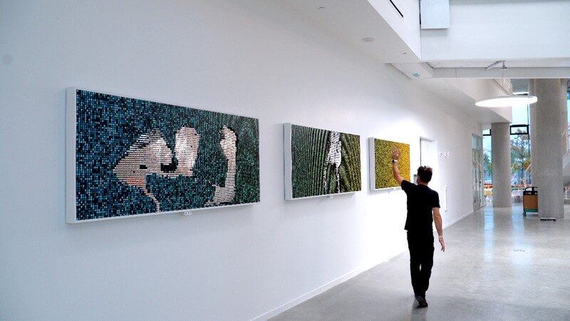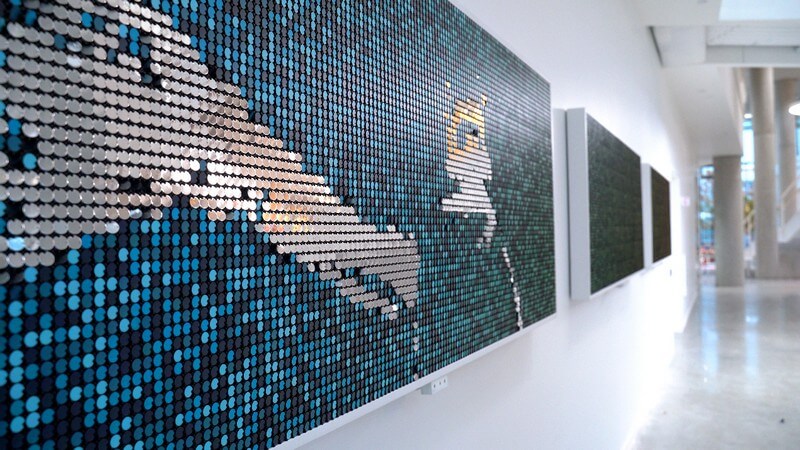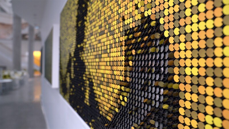 Harvard Time Capsule is made of Flip-Discs — a medium developed by BREAKFAST which uses electromagnets to rotate the physical pixels from one side to another.