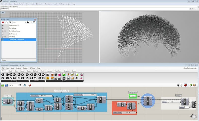 What this means in practice is that it is possible through the use of HoopSnake to send the output of a set of components back to it’s input in a looping fashion. With the help of a little bit of Data Tree / Data List manipulation, this should open up some new possibilities for iterative process modeling.