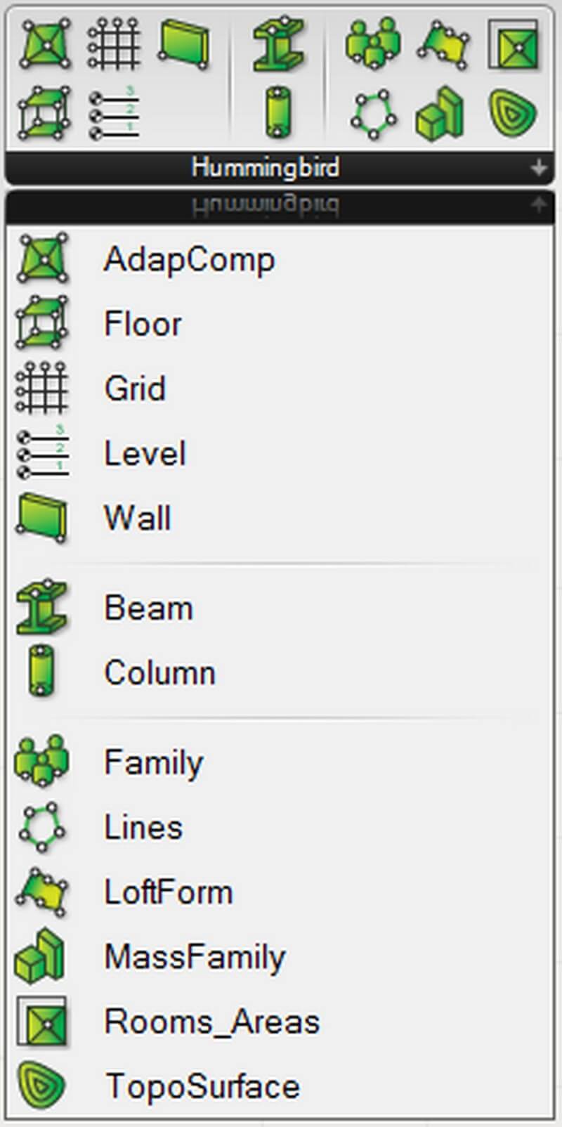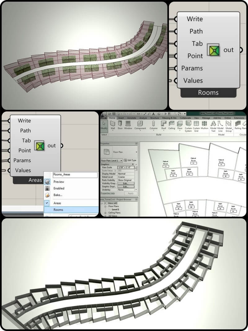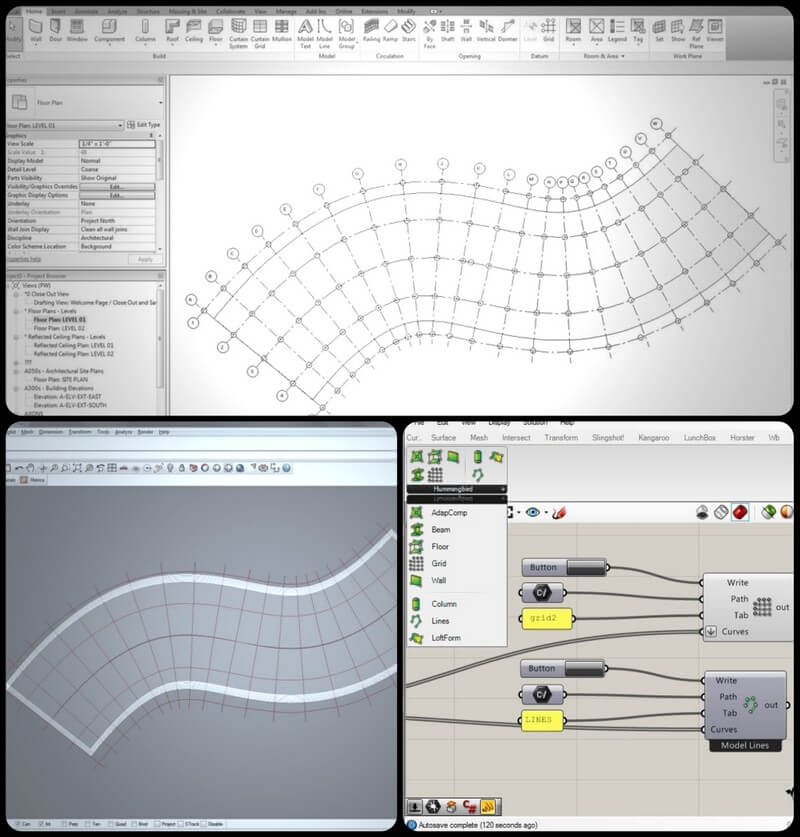 Hummingbird by Mario Guttman is a set of Grasshopper components that facilitate the creation of Revit native geometry. This process exports basic geometric properties and parameter data to CSV text files which are used to create Revit BIM geometry. The tool also supports importing Revit geometry into Rhino, making a bi-directional workflow possible.