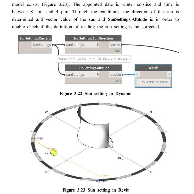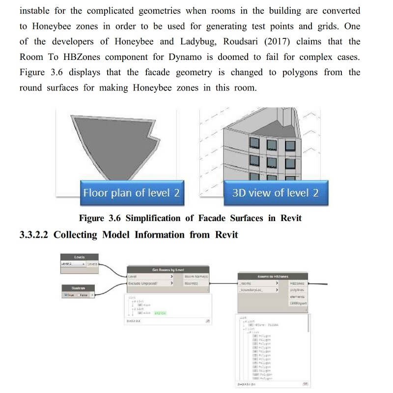 This can be provided by parametric design through facilitating model-based analysis and simulations with Revit, Dynamo (the visual programming add-in for Autodesk Revit), Honeybee and Ladybug environmental plugins.