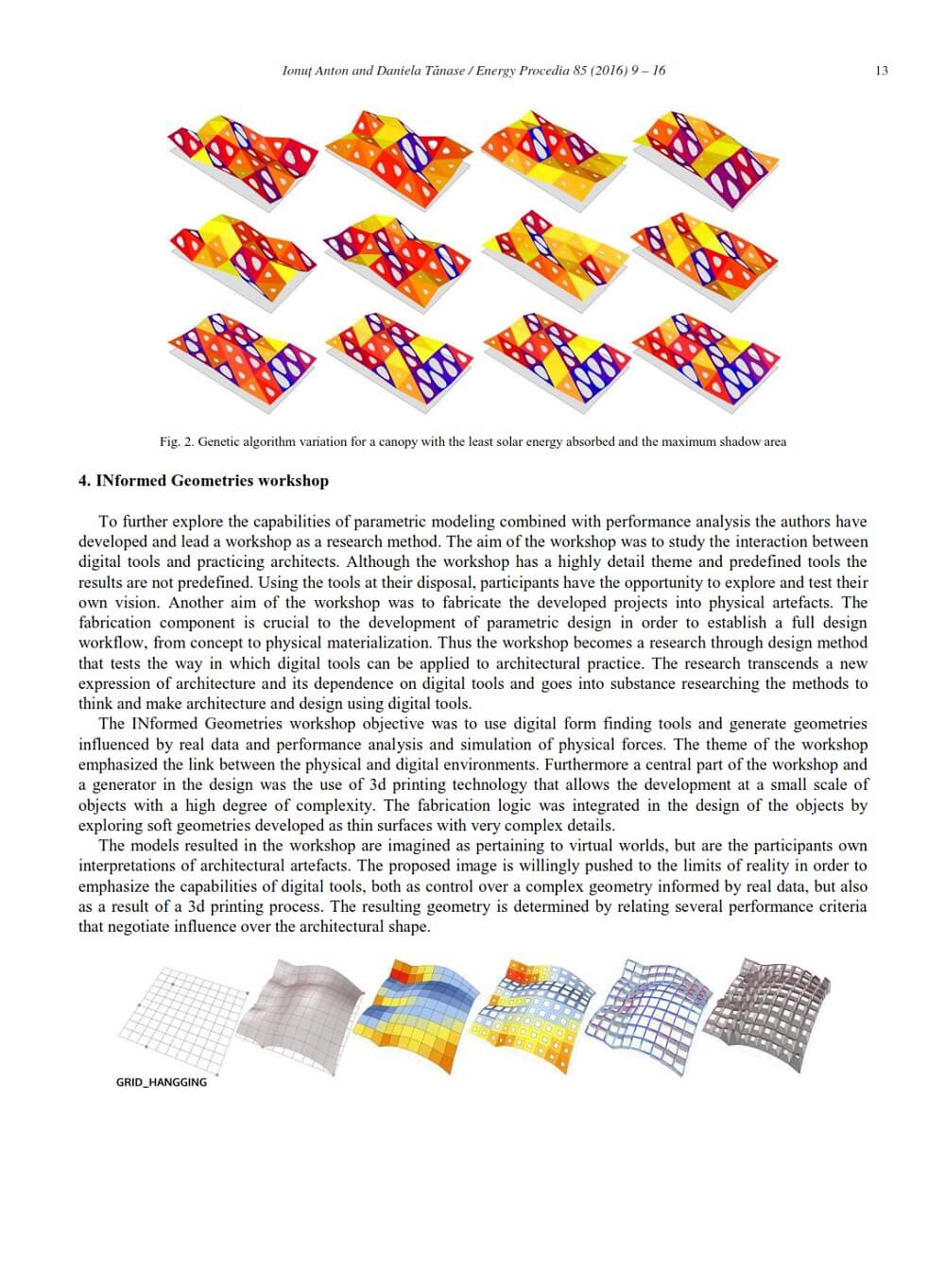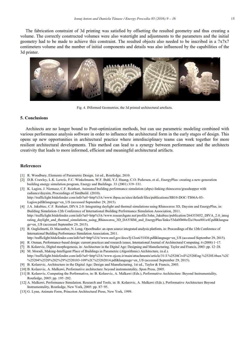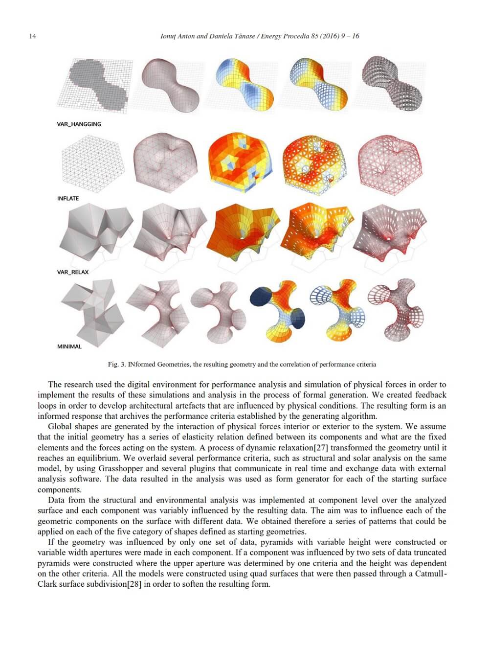 Therefore, it’s possible to put the idea of performance as a precedent to shape development and the architectural form becomes informed by the performative aspects. There are various computational tools in order to gather qualitative and quantitative aspects of the architectural artefacts performance in the early stages of design, and designers can go further from just optimizing a form after it has been defined. This paper by Ionuţ Anton and Daniela Tănase will discuss the implications of parametric modeling and energy analysis in architectural design and will present the authors research in developing architectural forms using the above described tools.