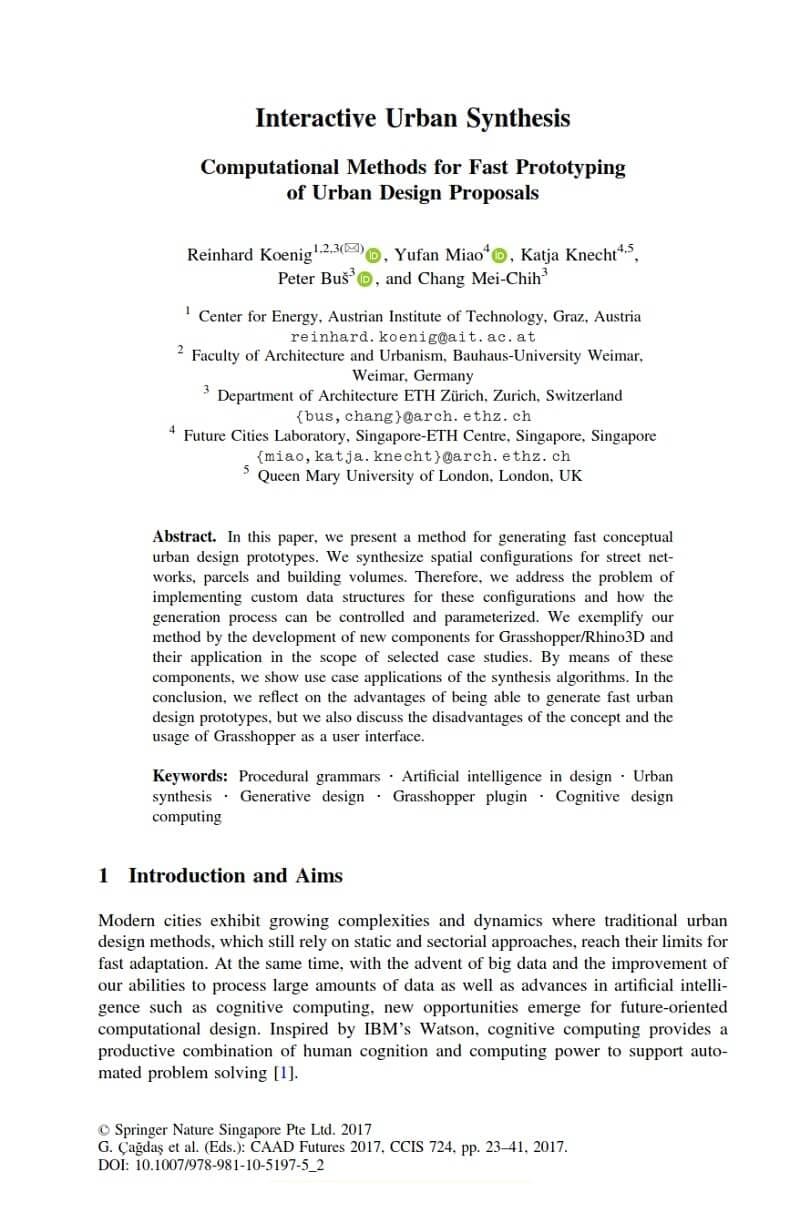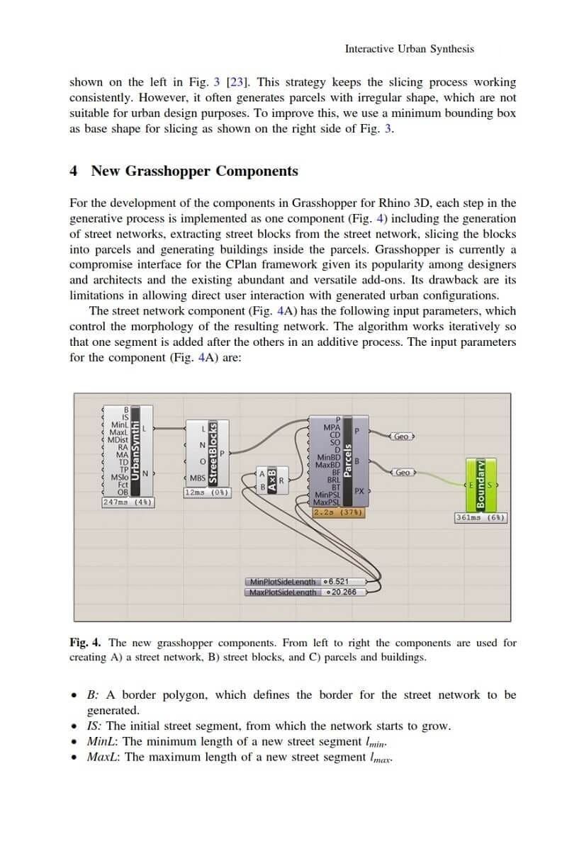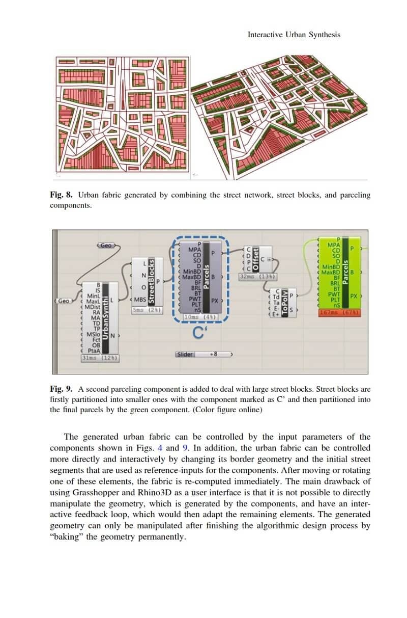 Authors exemplify the method by the development of new components for Grasshopper/Rhino3D and their application in the scope of selected case studies. By means of these components, they show use case applications of the synthesis algorithms. In the conclusion, they reflect on the advantages of being able to generate fast urban design prototypes, but they also discuss the disadvantages of the concept and the usage of Grasshopper as a user interface.