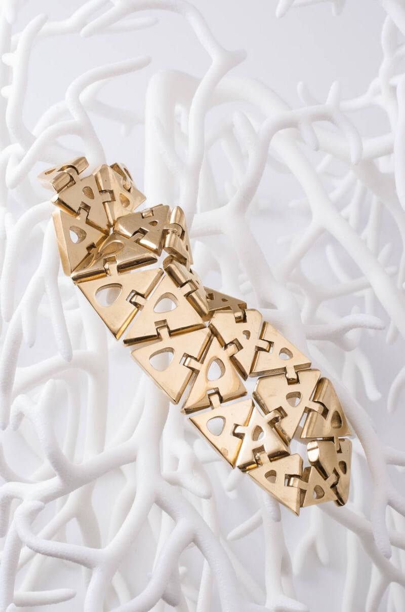 Nervous System is a generative design studio that works at the intersection of science, art, and technology. Founded in 2007 by Jessica Rosenkrantz and Jesse Louis-Rosenberg, Nervous System has pioneered the application of new technologies in design, including generative systems, 3D printing, and webGL. This Kinematics piece by Nervous System was 3d-printed using direct metal laser sintering (DMLS) in 18k gold by Cooksongold in collaboration with A3DM. This piece was fully articulated straight out of the printer and did not require any assembly.