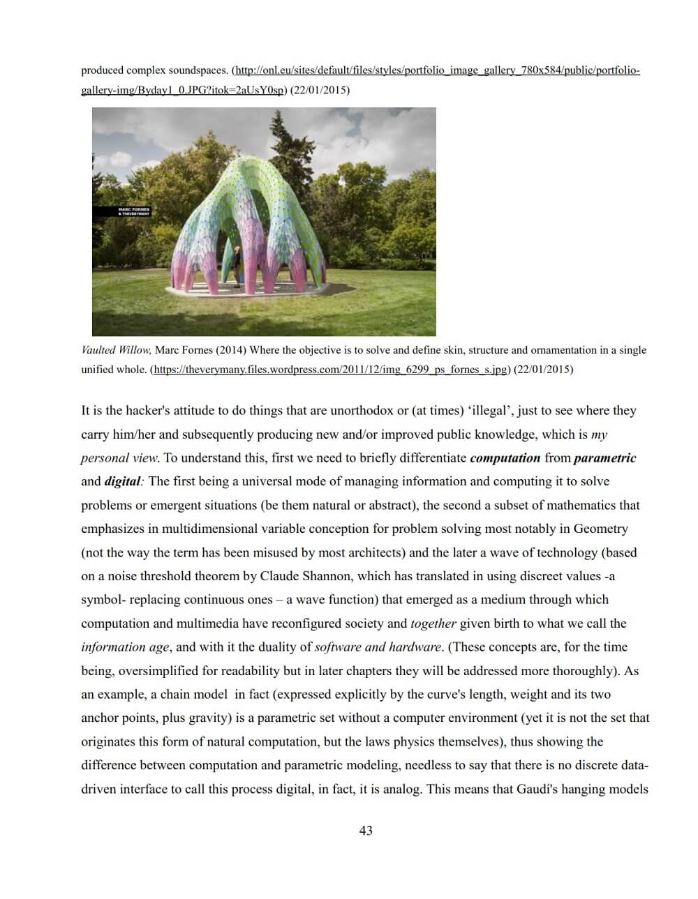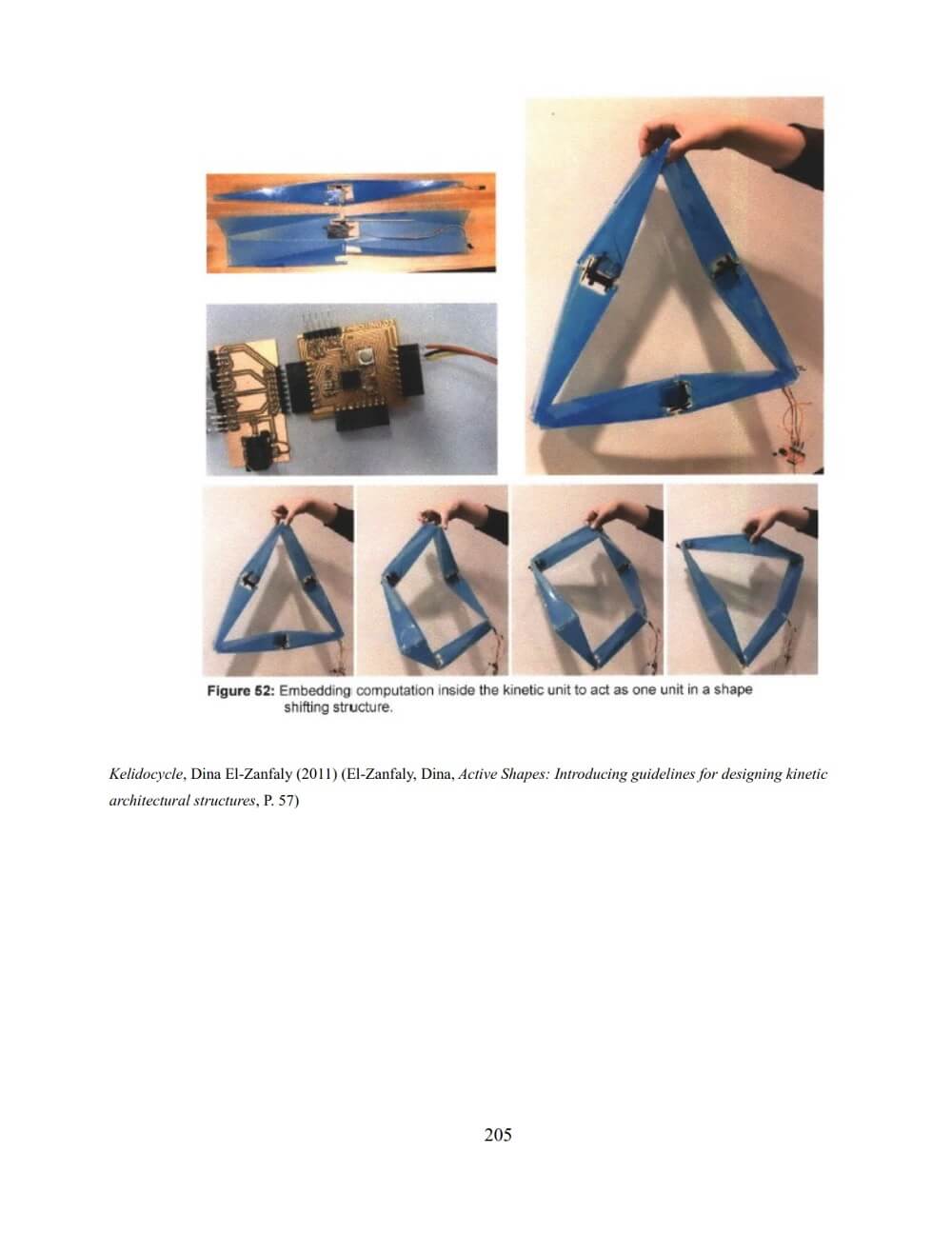 The project’s theoretical framework is based on William Zuk’s and Michael Fox’s kinetic architecture concepts, Dan Raviv and Skylar Tibbits’s work on programmable matter within the Self Assembly Lab at MIT while it also touches some of Dennis Dollens ideas about utilizing generative software tools and methods to address architectural design (specifically, a paper called The Cathedral Is Alive: Animating Biomimetic Architecture).