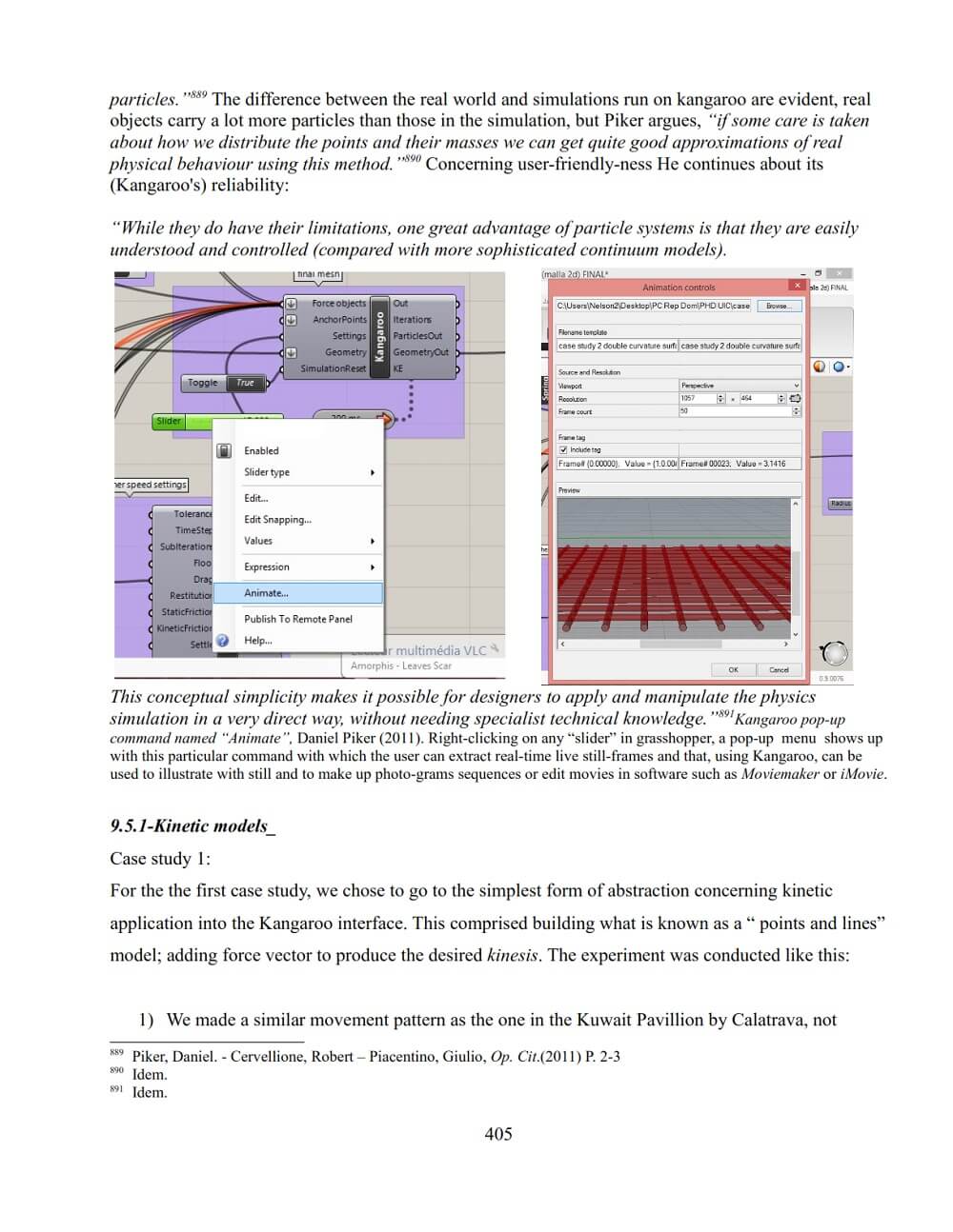To test and develop the software functionality it is needed to analyze certain examples of kinetic architecture (as case studies) and to understand how to mathematically model (and subsequently code in the program’s application programming interface -API- and/or user interface -UI-) the material’s properties in order to compute and simulate their behavior in the program’s work space (in relation to their stimulus/form/movement). This thesis will carry out experiments in that direction and arrive at conclusions about the subject matter.