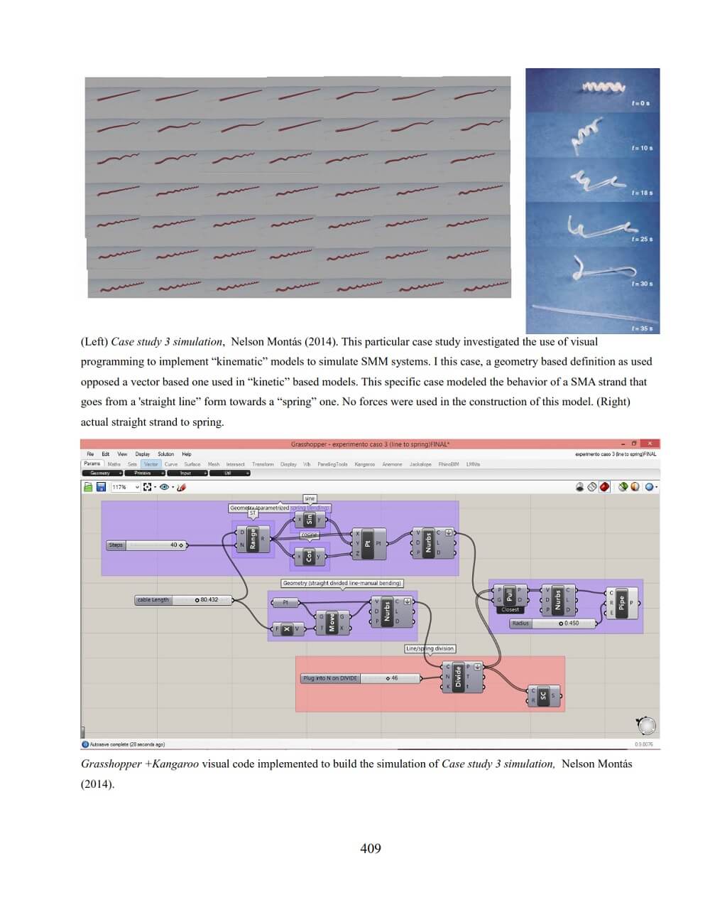 Performance Software Approaches for Kinetic Architecture: Programmable Matter Based Simulations, a Ph.D. project by Nelson Montás Laracuente that is basically an investigation and development concerning kinetic architecture design software support that will be used to simulate the behavior of shape memory materials (SMM– specifically Nickel-Titanium –Ni-Ti– alloys, Linear -LCP- and multi-block co-polymers -MBCP-) and which will work as either a plug-in, an add-on or a script in an already existing design platform (like Rhino/Grasshopper or Processing) preferably (but not limited to) Open Source that can give architects and engineers the ability to design and test-run kinetic components and, hopefully someday, entire buildings in a digital work space, before having to do so in a laboratory environment.