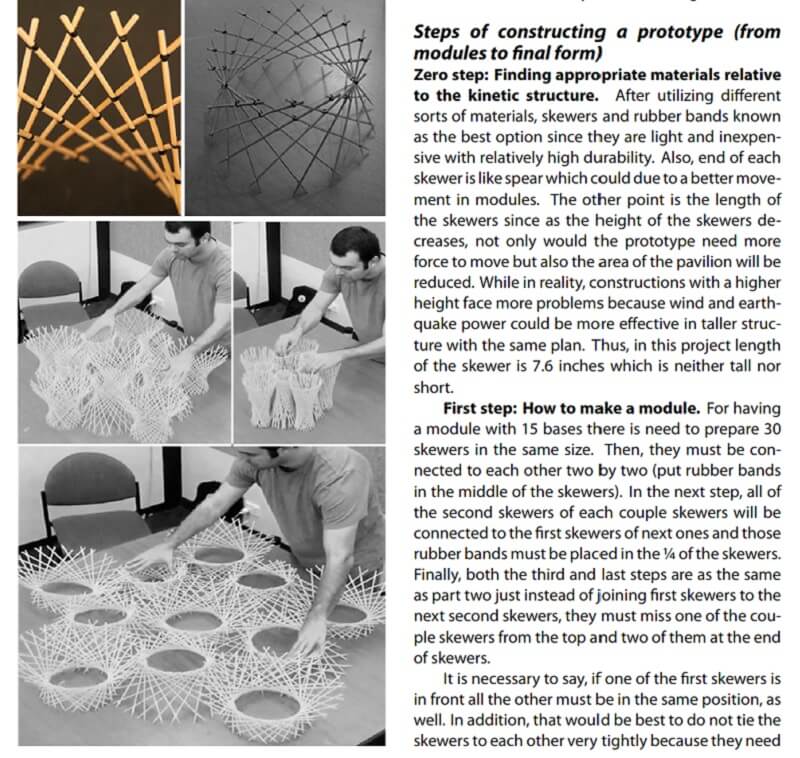 As a result, a model is designed and several prototypes have been built. This essay illustrates that with making a connection among architecture and other fields of study could lead designers to be more creative according to the existing limitation in each project.