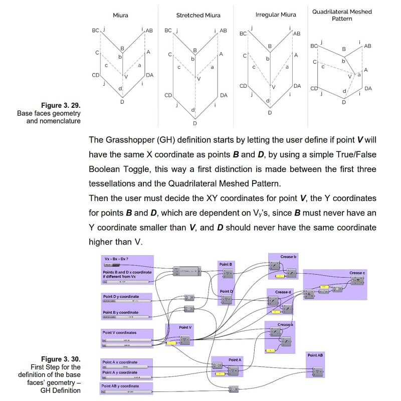 The workflow is a step-by-step process that allows to take a logical path which passes through the main involved areas, namely origami geometry and parameterization, materials and digital fabrication and mechanisms and control.