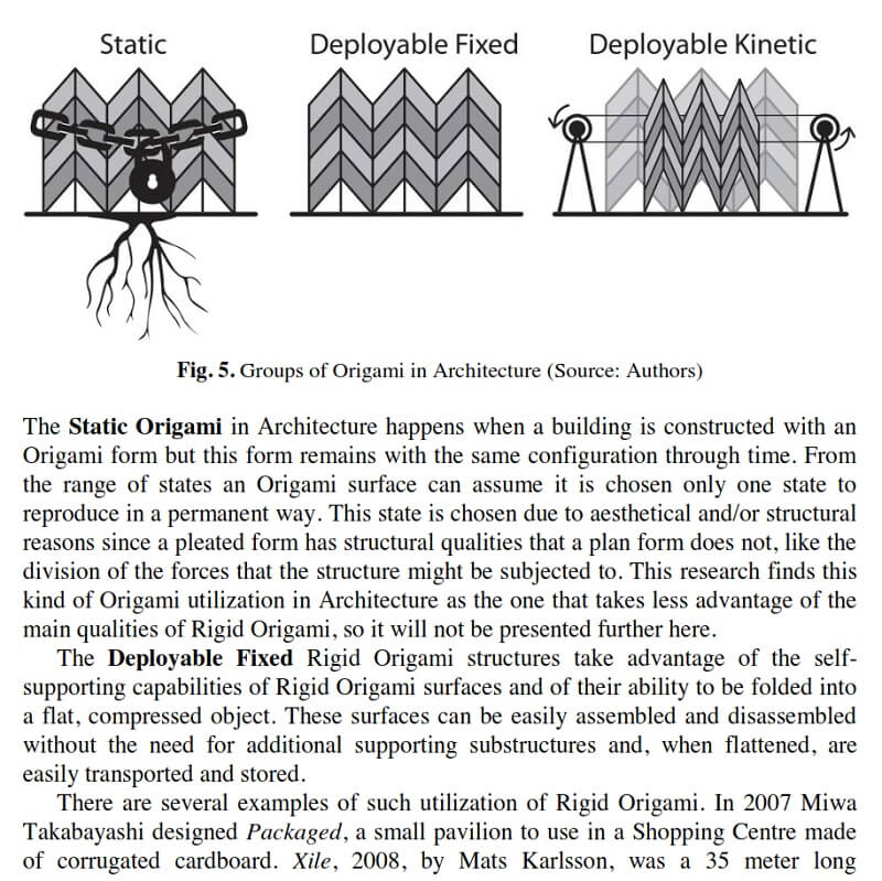 This article by Filipa Osório, Alexandra Paio and Sancho Oliveira describes the current state of an ongoing research that proposes the use of kinetic Rigid Origami foldable surfaces to be used as roofs for spaces with big spans and the practical contribution that the Design Studio Surfaces INPLAY has brought to it.