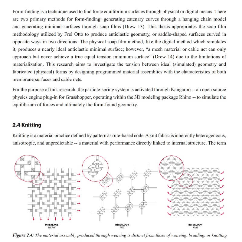 In this research, the material assembly, which is defined as a material whose properties derive from the programming of raw matter to form unique internal structures, manifests through the technique of knitting, a material practice defined by pattern as rule-based code.
