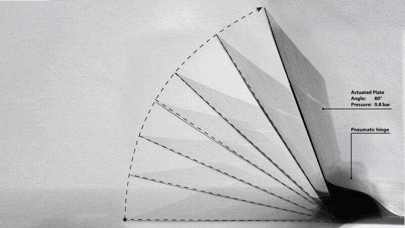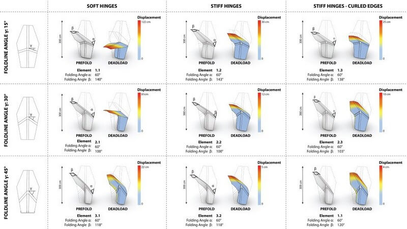 Those patterns can be mathematically described as flexagons, a common origami folding pattern,’ the team continues. ‘through analysis and mathematical geometric descriptions, it was possible to investigate and abstract the kinematic behavior, enabling distinct elastic hinge zones to be materialized with specifically programmed material gradients within the fiber-reinforced plastic.’
