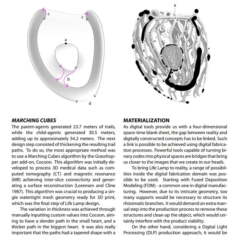 The designers worked both with a predefined heart-like 3D model as the design base and with agent-based modeling, widely explored by Craig Reynolds in the 1980s. Life lamp is a product that emerged as a result of Estudio Guto Requena’s research that investigates the impact of digital culture through design by seeking to merge technology and affection.