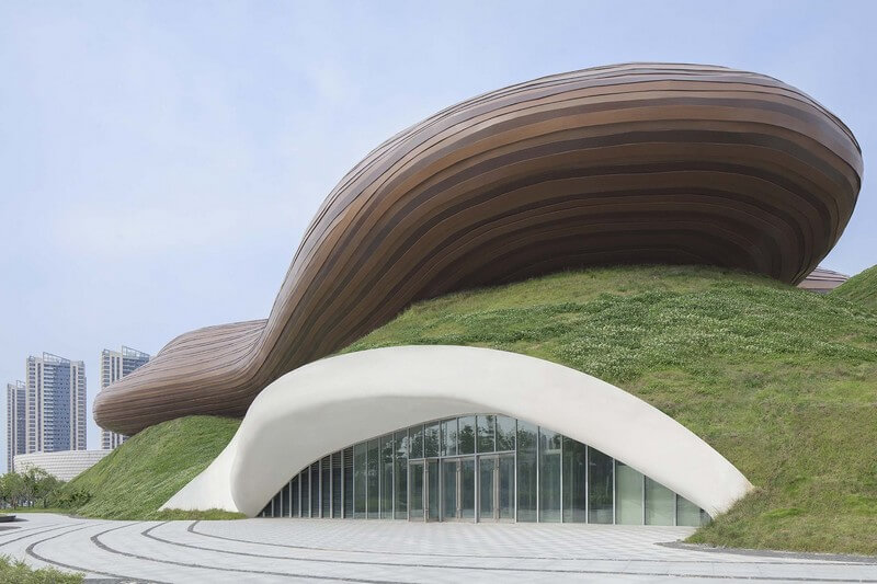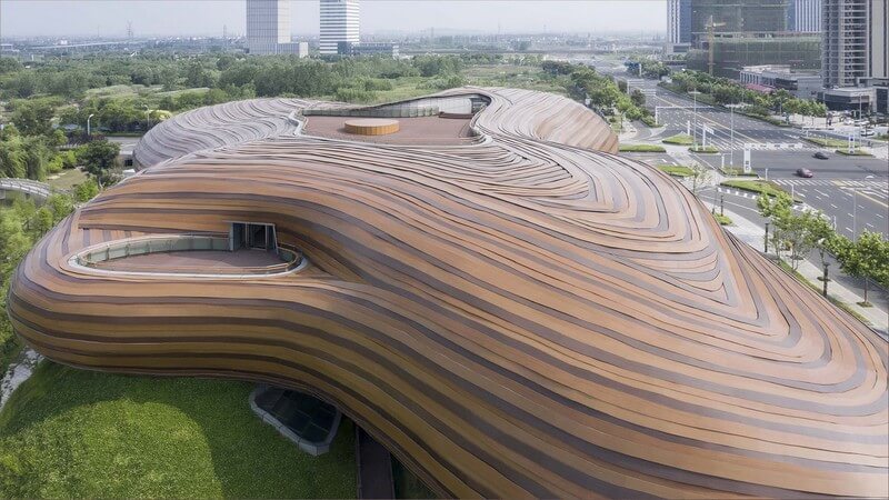 The chinese instrument, Jiaoweiqin, is one of Liyang’s cultural symbols.that’s the origin to build the city temperament. The architect C.R. Lin created the concept in the background of this story and transformed from historical antiquity into architectural form.
