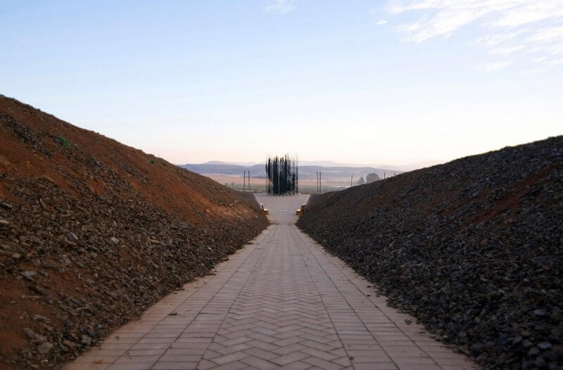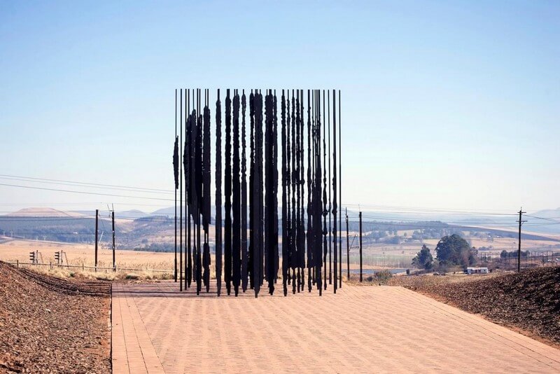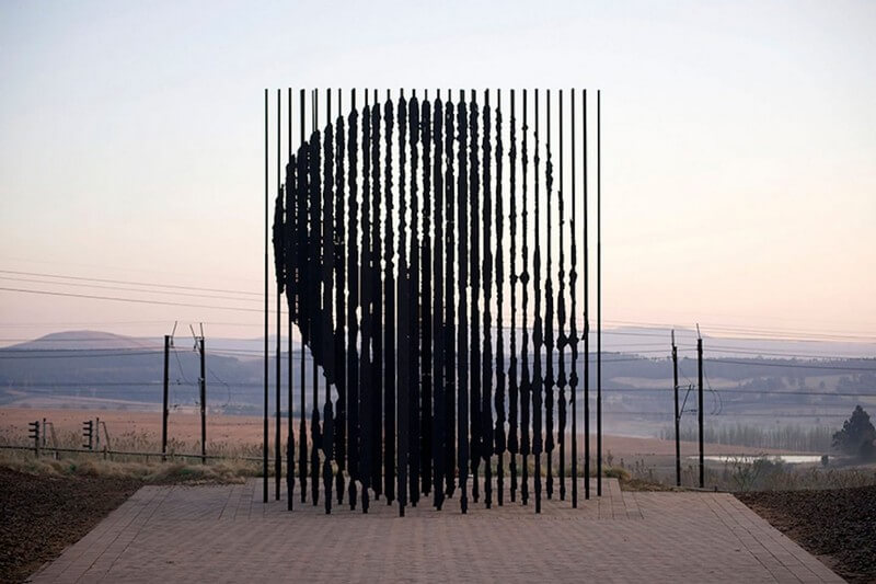 The shape signifies the leader’s 27 years behind bars for his efforts to bring equal rights and governmental representation to the once racially divided nation. Cianfanelli’s perceptive rendering is located in Howick, a town located 90 kilometers south from the city of Durban in the countryside of the southernmost african country.