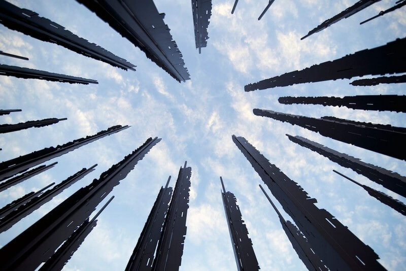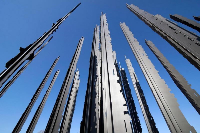 South african artist Marco Cianfanelli has developed a memorial to recognize the 50 year anniversary of peace activist and politician Nelson Mandela’s capture by the apartheid police in 1962. Viewed in profile, Mandela’s noggin spans 50 steel columns measuring 6.5 and 9 meters high, anchored to the concrete-covered ground.