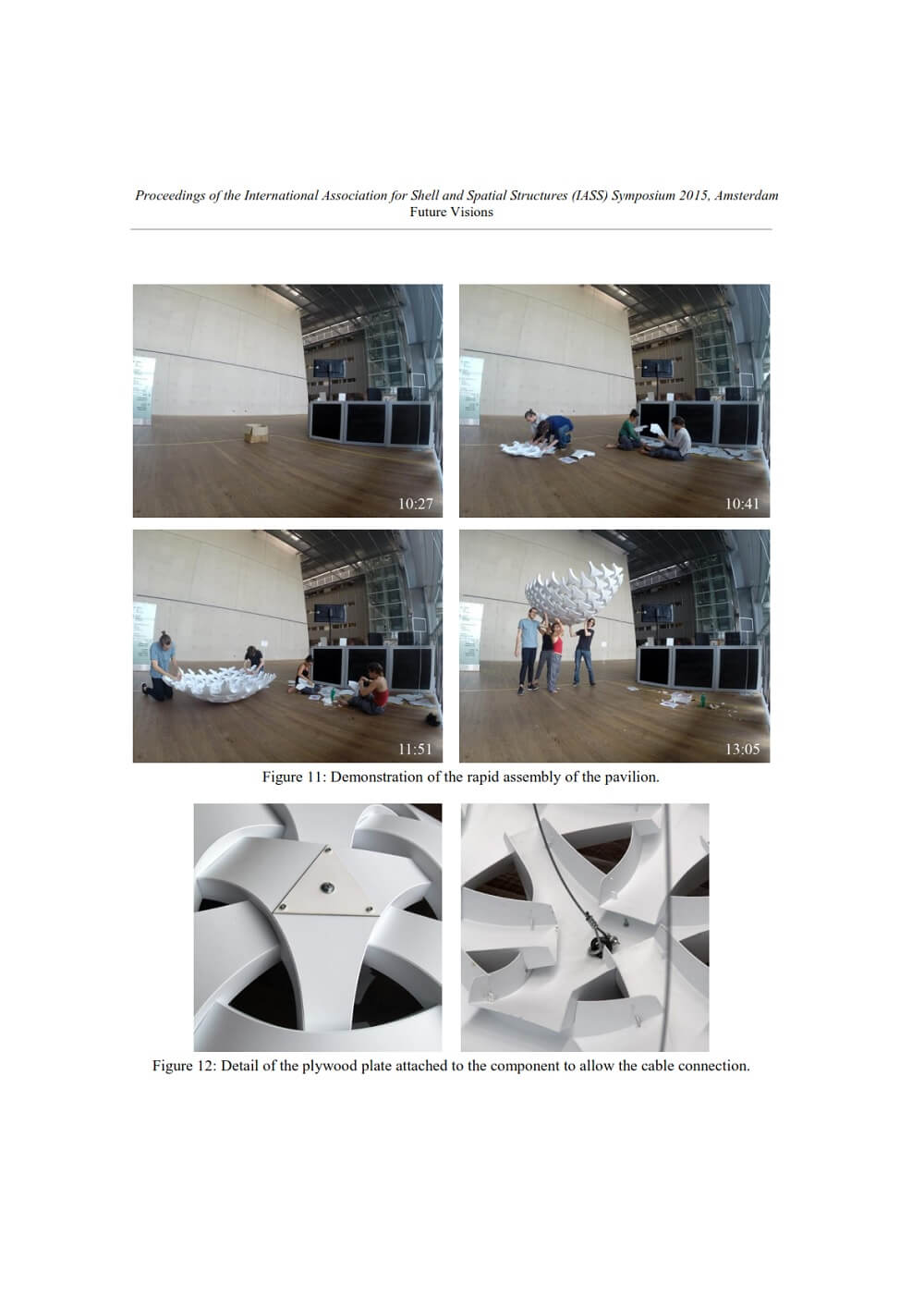 When composed of identical components, the obtained structure combines the advantages of rapid fabrication and assembly with an extensive reuse of components. However, the pavilion demonstrates that more geometrically and aesthetically challenging compositions, consisting of a series of custom-made components, are also possible and manageable when using digital fabrication techniques. Furthermore, this paper presents and discusses the digital modelling methods used for the design of the pavilion, as well as the lessons learned by real scale fabrication and assembly.