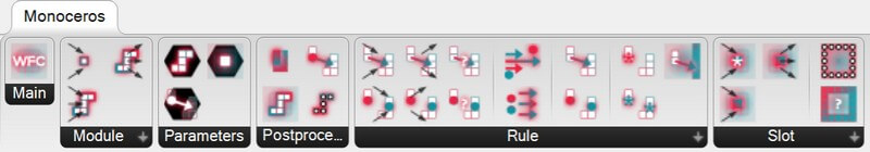 Monoceros serves to fill the entire envelope with Modules, respecting the given Rules. The plug-in wraps WFC into a layer of abstraction, which makes WFC easily implemented in architectural or industrial design. It honors the principles of WFC and Grasshopper at the same time – offering a full control of the input and output data in a Grasshopper way and their processing with a pure WFC.