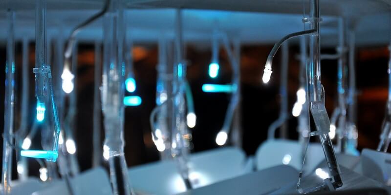 It was developed as a competition piece and displayed on exhibition in Florence Italy. The project consists of kinetic petals, laser cut from white acrylic, which hang from stems of clear tubular acrylic with planar elbow joints. The acrylic tubes were laser cut using custom fabricated jigs to create angles and grooves along each piece.