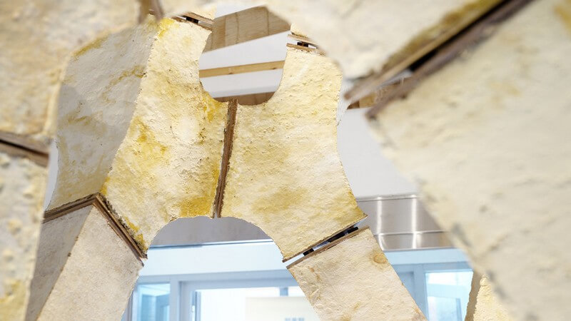 Utilising only mycelium and bamboo, the structure represents a provocative vision of how to move beyond the mining of construction materials from the earth’s crust to their cultivation and urban growth; how achieving stability through geometry rather than through material strength opens up the possibility of using weaker materials structurally and safely.