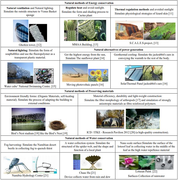 Since nature is based on the principle of sustainability, the accuracy of the human will never match the beauty, simplicity or directness of nature; where there is nothing missing or is not necessary as it is the optimal design. Thus, the copying or imitation of the phenomena of nature or mechanisms of survival and environmental efficiency in manufacturing processes act as the sustainability concept in the architectural design, which is called the biomimic design.