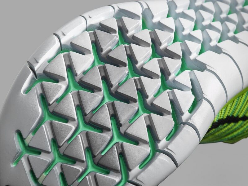 To form the new tooling, the designers employed a new dual-injection technology. Using heat, instead of glue, they fused two foams into one piece that still features an IU foam carrier and soft IP core but introduces more cushioning than past Nike Free models.