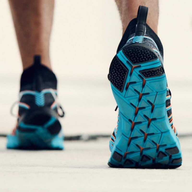 Drawing upon new studies that reveal how the foot expands and contracts upon impact with and liftoff from the ground, Nike designers developed an auxetic, or splaying, midsole. Spreading across two planes, the geometric tri-star form mimics how the body and foot react to force and accounts for the massive changes in foot size — approximately one size in length and two sizes in width — that occur throughout a runner’s stride.