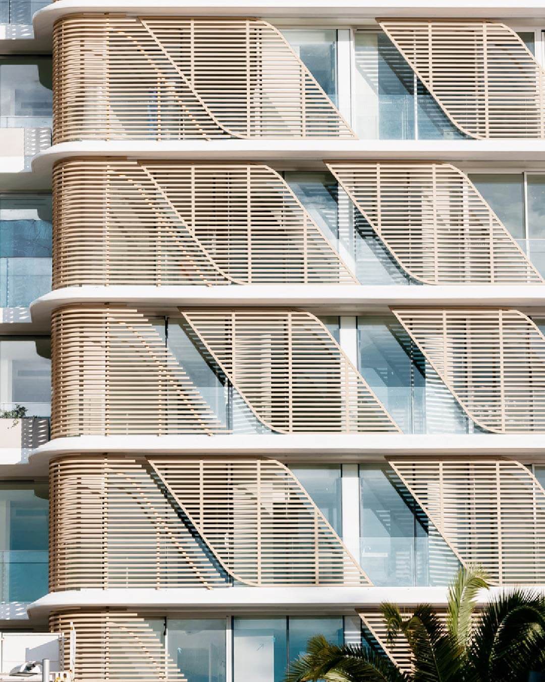 “Norfolk’s sculptural façade references the inner workings of the Norfolk pines, a natural icon in the Gold Coast region,” says Takada.