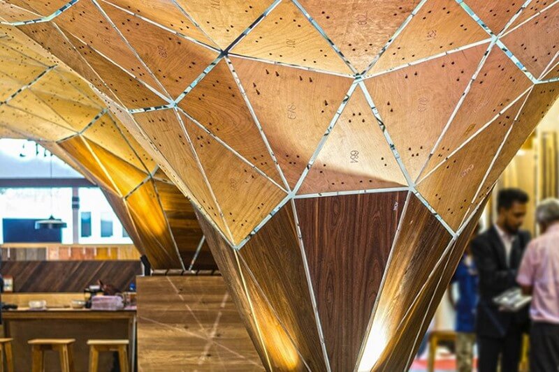One of their most recent projects, the NP Pavilion, Expo In Mumbai – commissioned by NipponPly, is a temporary installation made of plywood was designed for the Acetech Exposition 2018 Mumbai. Guided and inspired by Plate Skeleton system of Sea Urchins, the design embodies the integration of form, fabrication, and performance.