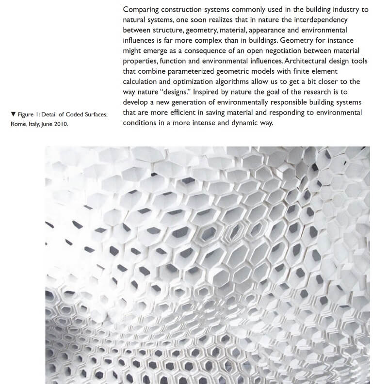 Grasshopper and the finite element plug-in Karamba were used to optimize these interdependencies. This paper will describe the design of the project and elaborate on an aspect of Riether’s research that uses digital technology to promote environmentally responsible materials and construction methods.