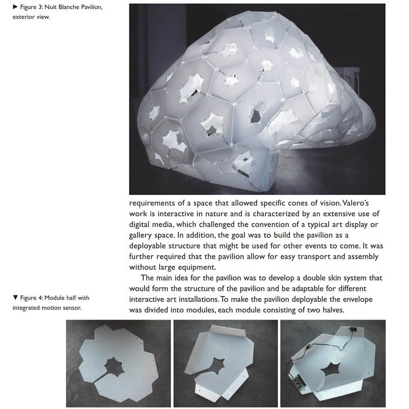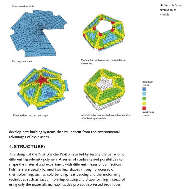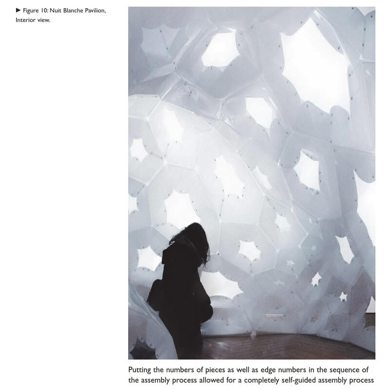 The Nuit Blanche Pavilion is a recent project by Gernot Riether in collaboration with artist Damien Valero. The project takes advantage of an elastic behavior found in high-density elastomers to form a lightweight structure that integrates form, geometry and program in a single material system.