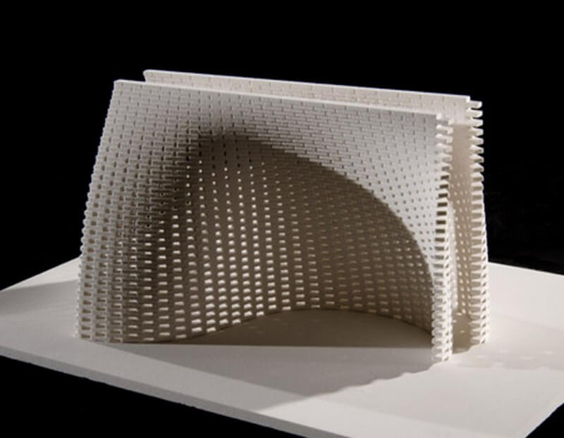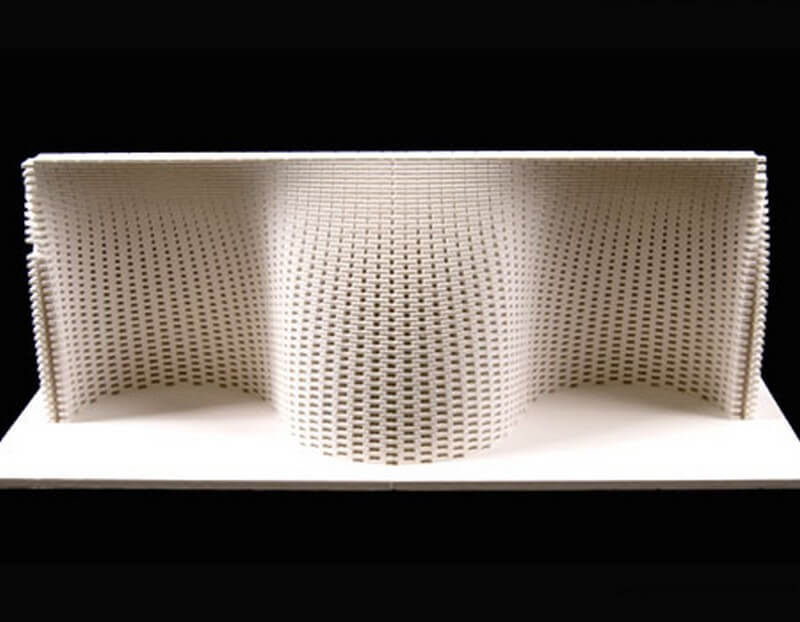 On the Brink exhibition was shown at the Graduate School of Design, Harvard University, and presented a digitally generated and fabricated wall consisting of wooden bricks. The Project is the outcome of a synthesis of computer generated design and computer aided construction research at the GSD under the guidance of Professor Ingeborg M. Rocker. The aim of the project was to produce a 1:1 scale wall using the GSD’s Robotic facilites.