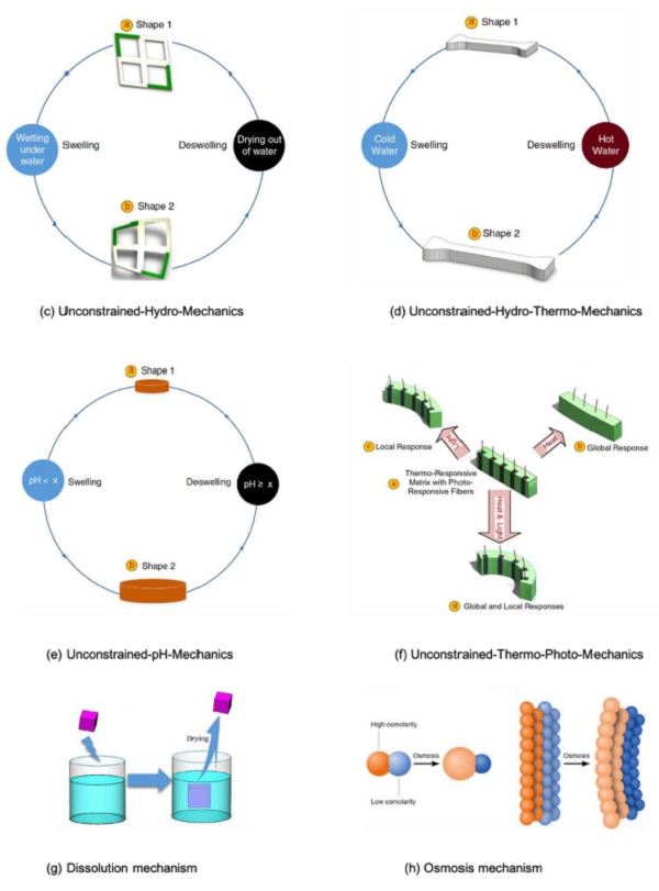In fact, the application of 4D printing has been reported in various fields, such as electronic devices, biomedical devices, organ and tissue engineering, optics and soft actuators, smart valves, regenerative design, electromechanical switches and smart clothing. It is believed that this revolutionary technology may influence various other mature applications in the near future.