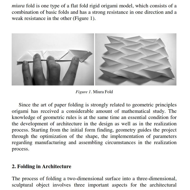 Folding strategies in architecture have been explored since the 1990s – if not before – as a method to generate spatial and structural concepts by applying complex geometries. These strategies are generally related to an analogue working method that involves paper folded models rather than digital form finding processes.