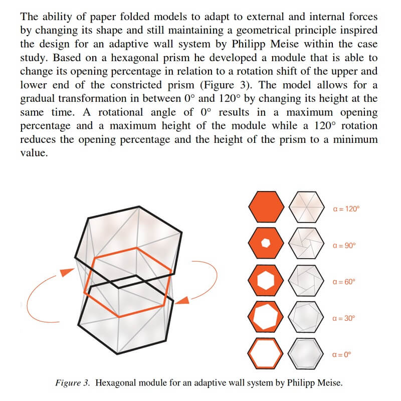 Against this background this paper by Marco Hemmerling focuses on the impact and possibilities of folding principles from origami for the digital design process in using parametric software to generate integral and adaptive systems within an experimental and intuitive design approach.