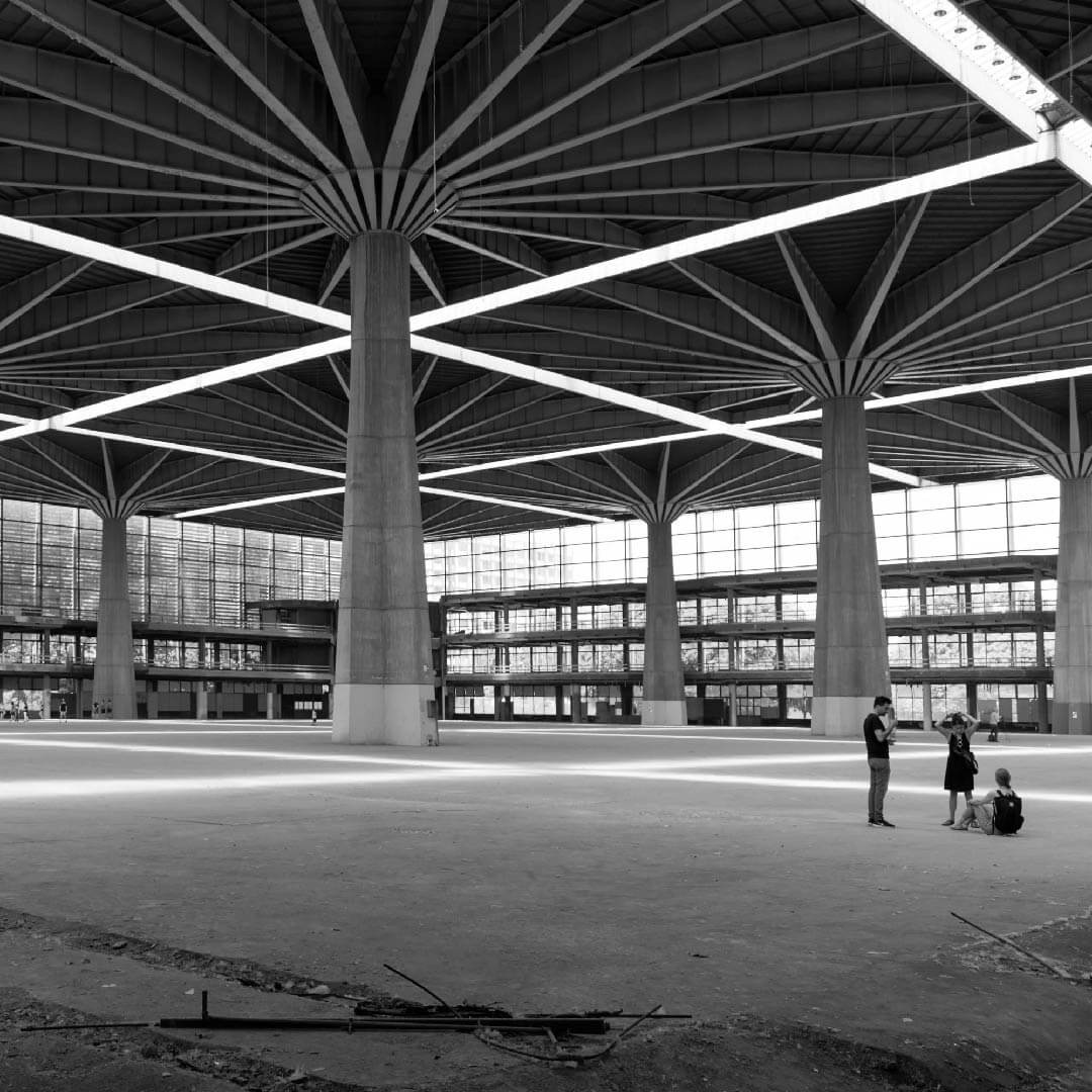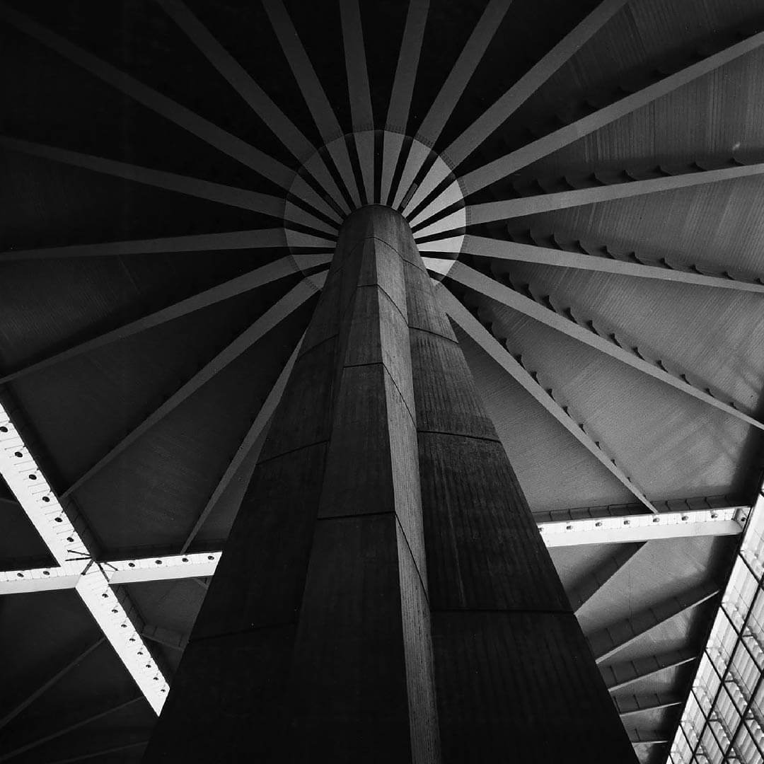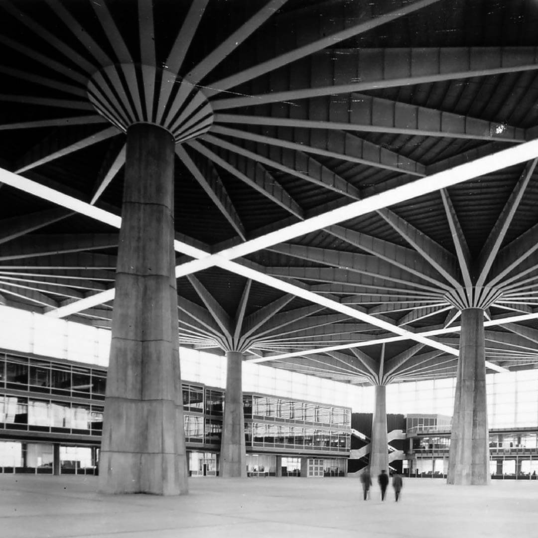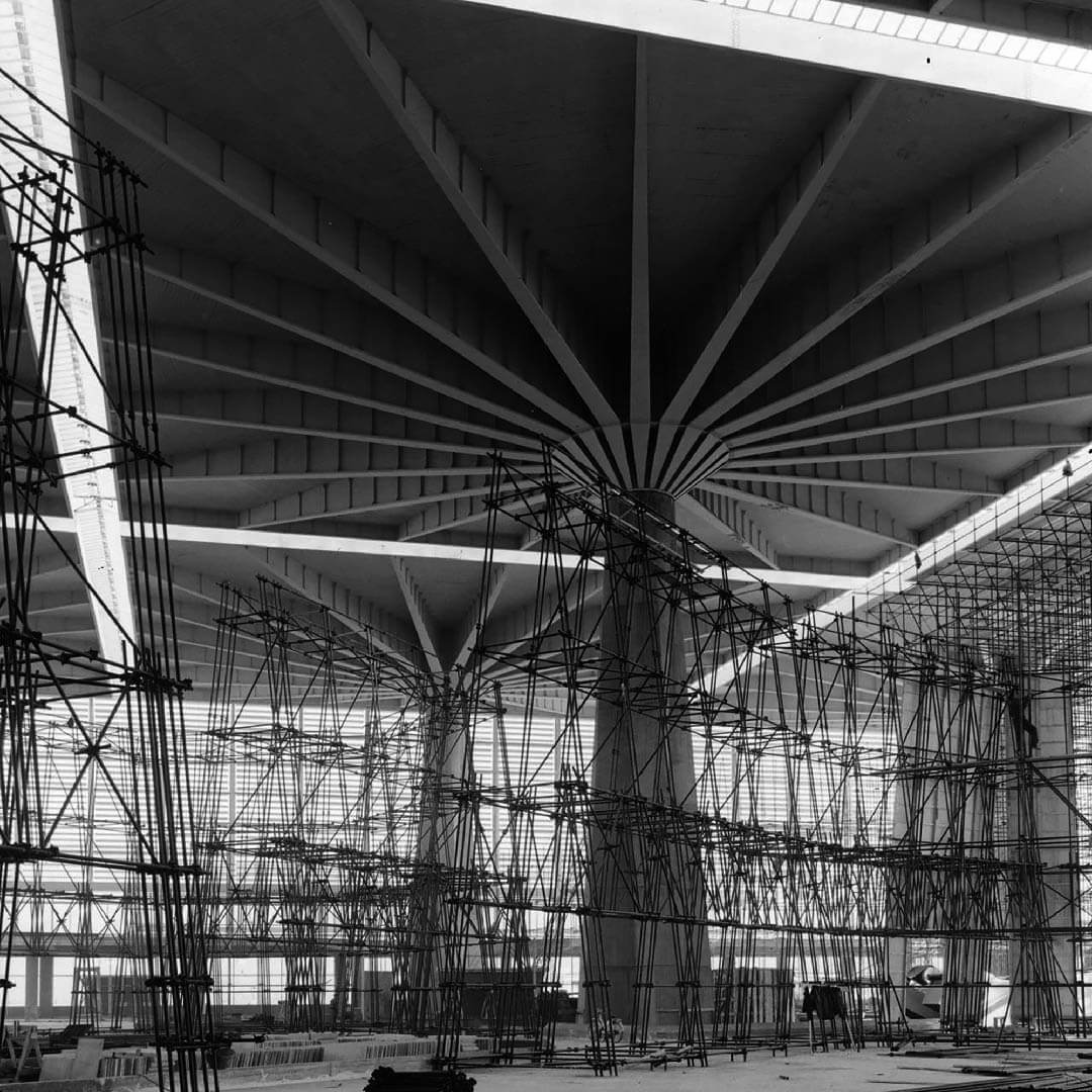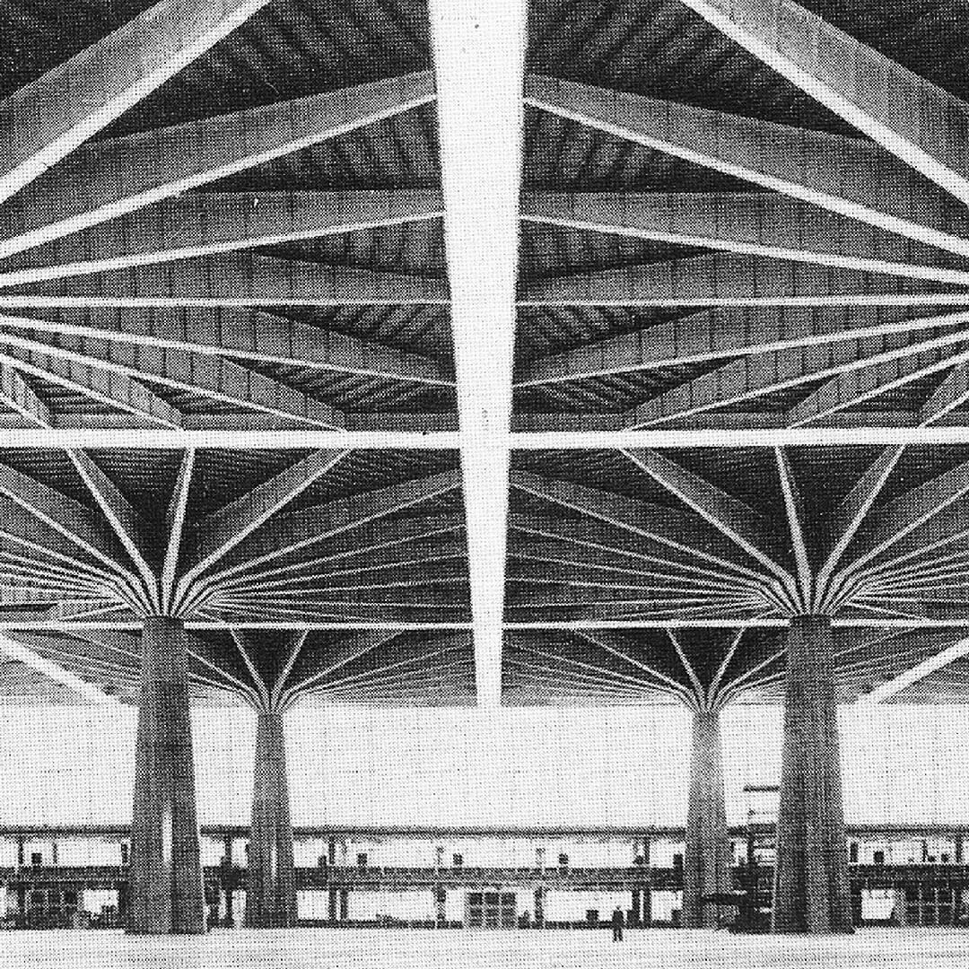 In 1975, they constructed and built the Mannheim Multihalle, a 7400 m2 gridshell that spans up to 85 m. Their solution was a double layer configuration using 50x50mm hemlock laths. Extension of laths were done by finger joints.