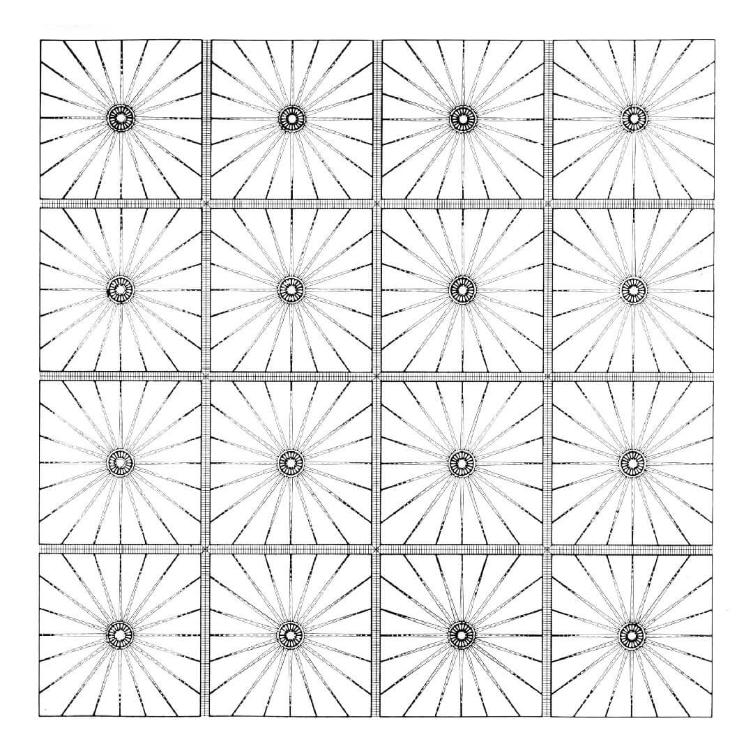 In principle, the same connection detail can be applied in all nodes except for the edges. In addition, the distance between the nodes are uniform.