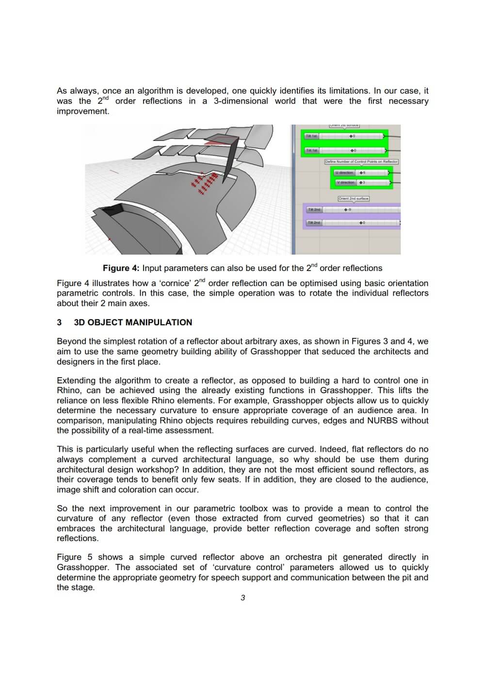 The integration of basic geometrical acoustics into architectural design is not new. The arrival of 3D modelling packages such as Grasshopper has certainly increased the consultants’ efficiency and dialogues within the design team. It has also forced the designers to go back to the basics. Efficient algorithms are complex and their development time is consuming.