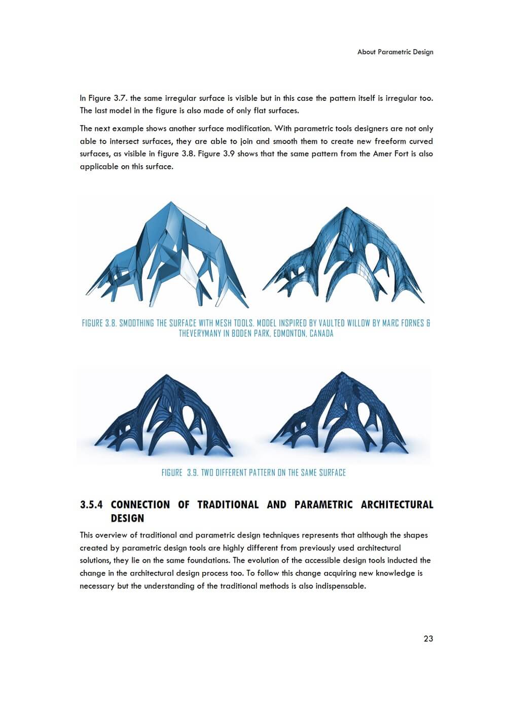 This thesis by Reka Sarkozi examined parametric architecture and its applications on numerous ways. During this research we get an overall view of this branch of architecture and author used this knowledge not only in further research but in design tasks and in education too. Because of that, this research is widespread in the field of parametric architectural design.