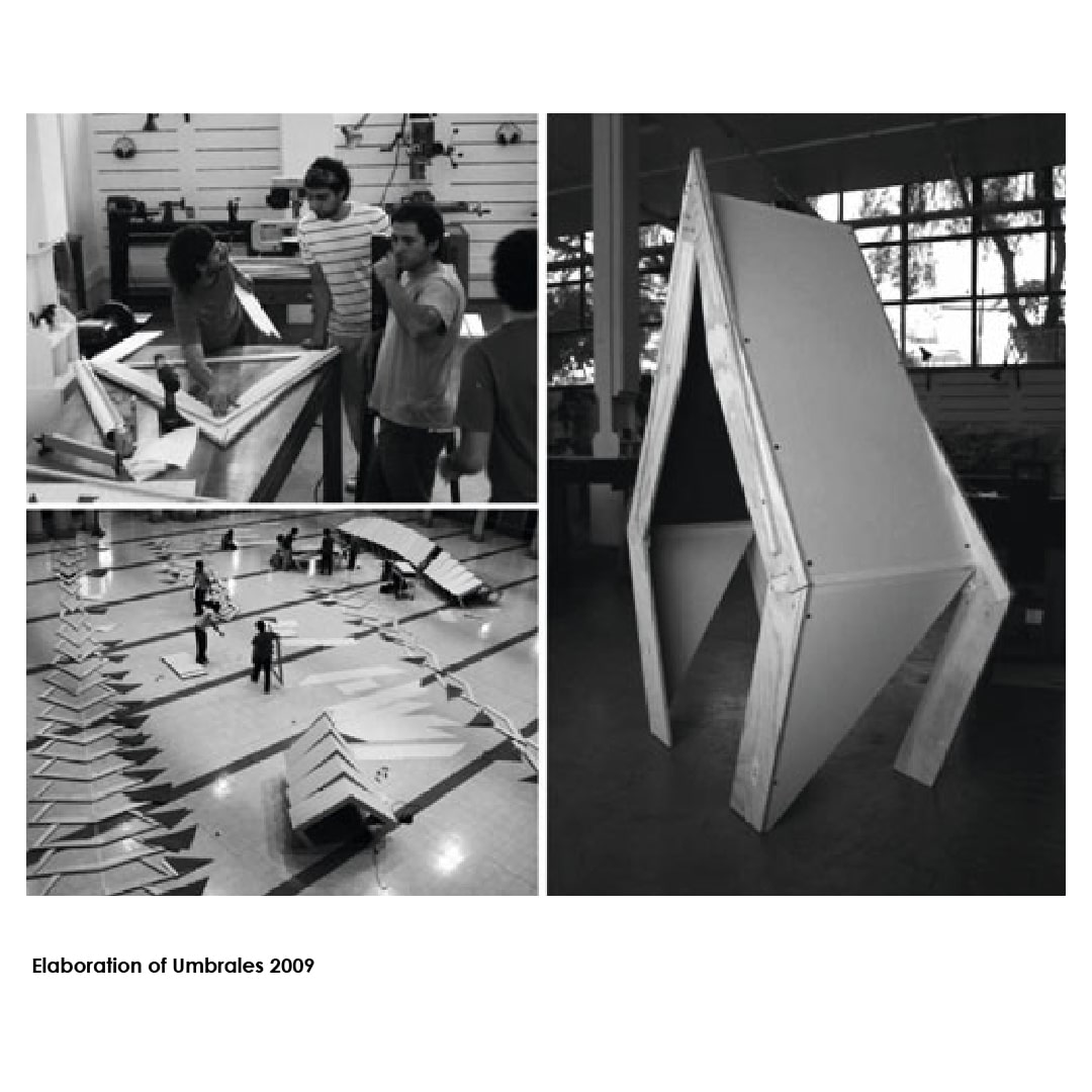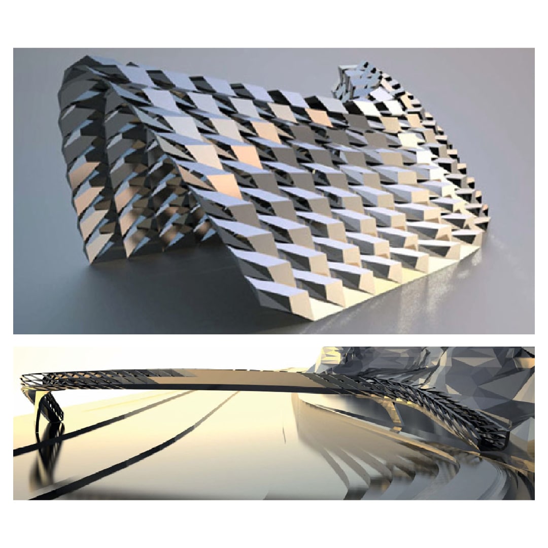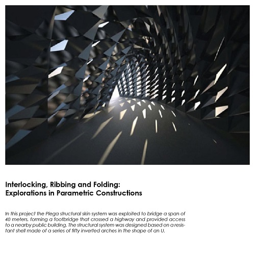 The third project is a system of metal sheets folded by digital machines to create urban circulation spaces. The three works develop a parametric programming of geometry based on certain technical factors, enabling the recognition of patterns of interaction between formal and constructive issues involved in the definition of shapes through parametric controls.
