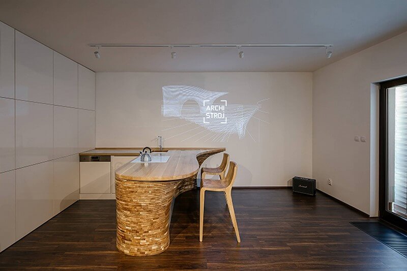Archistroj design studio has recently completed the interior design project of an apartment in Prague. It is one of a few examples of parametric architecture in the Czech republic. The parametric interior of the apartment is optimized using algorithms based on the user’s lifestyle. The resulting design is particularly interpreted through organically shaped build-in furniture placed in a simple, open, minimalist apartment.